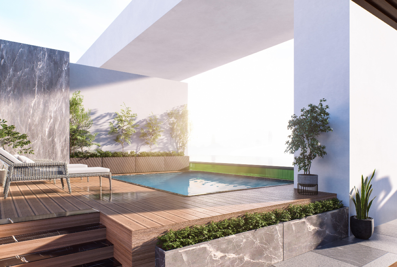 These magnificent residences feature glass corners in the living room, bedroom and bathroom, with complete and guaranteed privacy.
